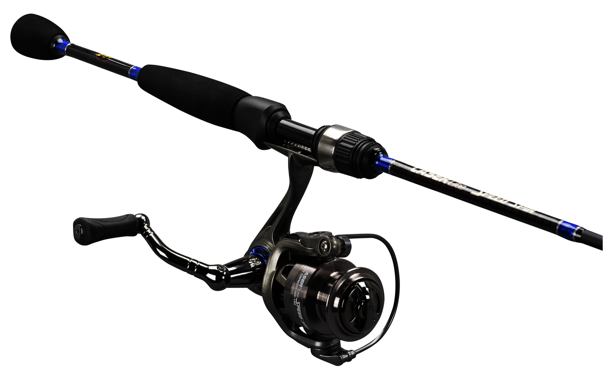 The lightweight skeletal graphite rotor design of the 4 bearing (3 ball bearings and a Zero Reverse one way clutch bearing) Speed Spin® reel cuts out weight in all the right places, without hampering its structural integrity. The reel’s frame is dependable graphite construction that looks great in its silver finish. The anodized aluminum spool with blue accents adds to the classy look. The Laser® Lite combo rod comes in numerous ideal ultralight lengths. The super sensitive IM6 light action graphite blank brings castability and a fish-whipping performance to the outfit