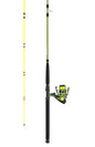 Specifically designed to haul catfish out of their hiding spots, Zebco’s Big Cat spinning combo is durable and ready for any tussle with a huge catch. A match for any catfish, this combo is built with all-metal gears, a smooth, multi-layered drag stack, and a ball bearing system in the reel, while the rod provides even more durability with a strong fiberglass rod and double-footed stainless-steel guides. A high-visibility rod tip and 25 lb hi-vis line increase awareness of movement under the water to help anglers snag a catfish with ease.